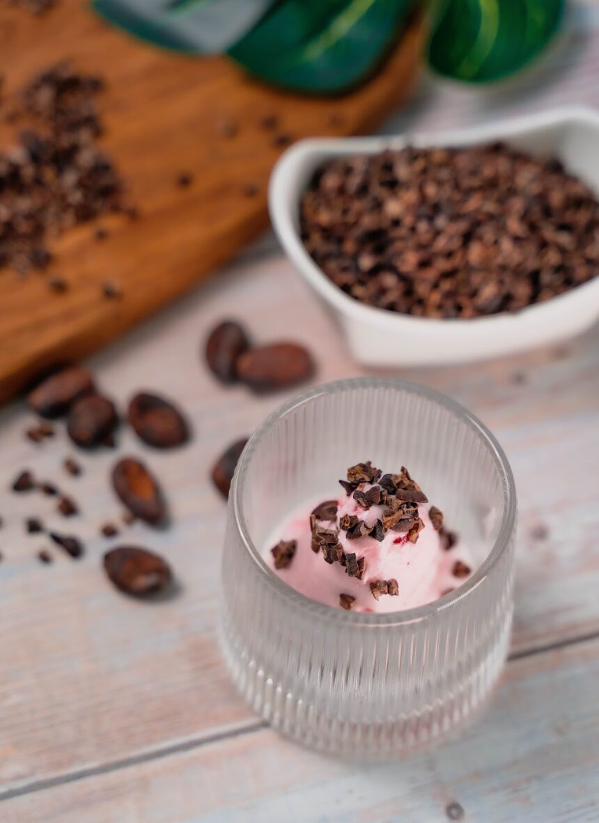 ニブのカリカリとした食感と、カカオの香りがふわりと広がり、味わいに上品な深みを添えます。